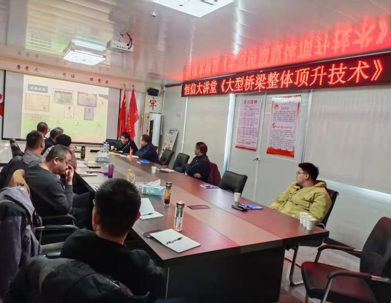 本次恒信監(jiān)理大講堂由公司總工程師高厚儒帶隊,采用線下與線上相結(jié)合的方式,公司年輕骨干人員現(xiàn)場參會,公司其他監(jiān)理人員通過線上參加會議,項目聘請了上海天演建筑物移位工程股份有限公司技術(shù)總工張昊進行授課,會議上主要講解了本工程頂升概況、重點難點、施工中應注意事項、如何保證頂升中施工安全、已完成頂升的橋梁工程業(yè)績等內(nèi)容。通過本次學習讓我們監(jiān)理人員了解橋梁頂升技術(shù)參數(shù)要求,施工中應注意控制的重要節(jié)點及關鍵工序的控制要點,既拓寬了監(jiān)理人員的橋梁頂升技術(shù)知識,也為后期現(xiàn)場橋梁頂升監(jiān)理工作做更好的鋪墊。